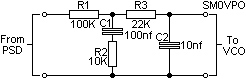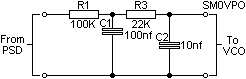 R1/C1 have a time-constant of 10mS which is enough to smooth out our 2KHz and give us a nice DC level. R2 is also added to introduce a little damping to prevent the whole loop from oscillating. R3/C2 have a much shorter time-constant and just help to clean up the loop voltage a little. The loop filter can be quite complex and is almost a complete subject in it's own right, so I do not intend to go too deeply here. The only other point I wish to discuss about loop filters is the choice of time constant.