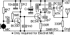 The transmitters on my homepage seem to be quite popular, especially those intended for the 88 - 108MHz FM band. I must really confess that I also favour this broadcast band, mainly because it is so easy to find signals on the workshop radio. Everyone has an FM radio, and it is fun to play with. Experimental antennas and the like can all be developed in this band since there are a huge range of "beacons" all transmitting just for my benefit :-). Basic oscillators also are easy to fault-find in this frequency band, and then later modified for other VHF bands.