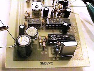 My camera is not so good with the resolution, so perhaps you may like to look a little closer at the finished PCB. The first picture is the crystal oscillator and CMOS logic, the second picture shows the VCO, filter and the top left, the output buffer stage.