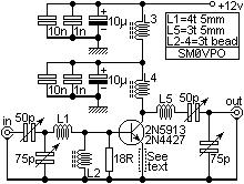 The above circuit can be made linear so that it can be used to amplify SSB and AM signals. All that is required is to add 0.7vDC of bias to the Base of the amplifying transistor whilst still maintaining the RF Ground at the two DC base feed components.