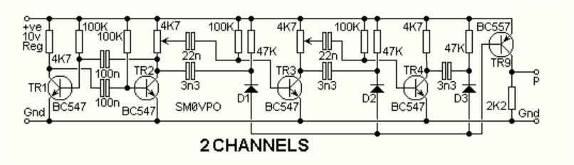 If you are like me and want to make your own radio gear, then I have already published an Arduino Nano encoder for up to 8 channels (see the links below). All you need do is use the data output to drive a transmitter, whether it be 27MHz, 35MHz, 40MHz, AM, FM; it makes no difference. To receive this you need a decent receiver, and the ZN414 / MK484 / TA7642 (CD7642, UTC7642, LMF501T) ICs already work for AM as a 455kHz IF sub-system. If you want FM then you can use the TDA7000 with the narrow-band modification I have given on my homepages. Again, you can use this as a 455kHz IF sub-system. But let us look at the decoder: