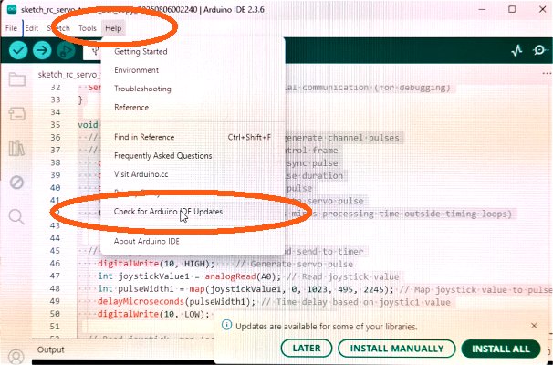 This project is perfect to connect directly to your RC model and test all the control functions on the bench, before you add the radio. You can use it to simply check servos and RC power controllers, or even use it to remotely tune your Ham-radio antennas at the bottom of the garden. This project can be built for a single servo, or extended as much as you like, at least up to 8 channels. If you want to extend further than 8 channels (eg. 20 channels) it will work but you will have to lengthen the frame timing, and find more ports on the Arduino (this uses one port per servo). I will give you all this information after the code, as well as explaining how the code works, which is NOT normal practice with Arduino projects - Arduino authors traditionally give the end code without any explanation.