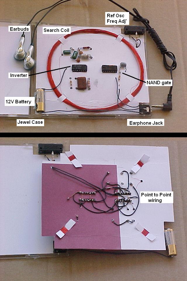 The circuit shown (Fig 1) is of a metal detector of simple design and intended to fit within a CD "jewel" case.