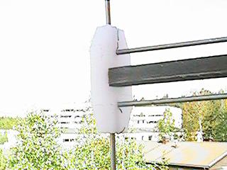 I have not shown the dimensions of the cut blocks but the inserts in the first picture show you exactly how they are formed. It all depends upon what size wooden mounting boom you have. It could of course be metal, but I had a bit of wood sitting doing nothing on the balcony. The only important bit is that the stub should be 1/4-wave in length, not counting the shorted (folded) end.