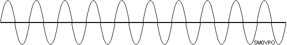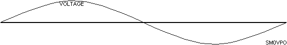A full wavelength antenna is rarely used for amateur work. We more often than not try to use a 1/2 wavelength, in the centre and fed at the two ends of the cut to a transmitter via a balun (transformer) and feeder. The formula for a 1/2 wavelength is 150/fMHz metres long. The ends of a 1/2-wave antenna are not connected to anything, so there is no current, but there are loads of volts. A the centre of the 1/2-wave there is loads of current, but no volts. This is what it will look like if you could see the voltage waveform on the antenna driven by a transmitter.