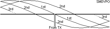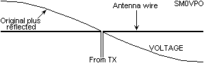 When all the power hits the end of the antenna it will be reflected back and as you can see above, the reflected wave will follow the forward wave exactly. It is a fact that the signal radiated is only about 1%, but when the signal bounces back it will radiate another 1%. When it hits the other end it will bounce back again and radiate yet another 1%. In this way the signal will bounce back and forth many hundreds of times. Eventually the signal will be almost totally radiated. Since the reflected matches the forward exactly it will always be in the same phase no-matter how many times it bounces back and forth.