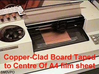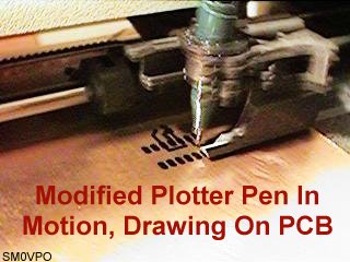 This article is about another method I tried and had 100% success first time. The object is to modify an old plotter pen so that you can draw direct onto the PCB material itself. No photography, just a new pen. All you have to do is the use one of those Faber Castell S overhead marker pens and it works just as well as a Dalo PCB drawing pen, but a lot cheaper. Unfortunately these pens are far too long to stuff into the plotter, you need a little modification. You also need to use an A4 sized bit of film to hold the PCB. I just taped the PCB in the centre and told the plotter program to centre the plot. Easy!