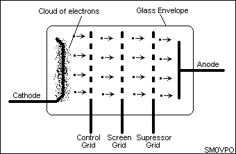 The solution to the 'kinky' tetrode is the PENTODE, which has yet another grid, the SUPRESSOR GRID (G3). The suppressor grid is normally held at cathode potential so any electrons liberated from the anode are shielded from the screen grid. This way they only feel the attractive force of the positively charges anode, so they go back to the anode where they belong.