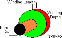 Now you know how many turns to use, all you need to do is to work out the wire size to fill the former. If winding by hand then you can assume that the wire is square, so a winding depth of 5mm and a winding length of 8mm will have 40 square millimeters of winding area or 40 turns of 1mm Dia. magnet wire, or 160 turns of 0.5mm Dia. wire.