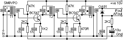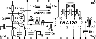 One word of warning, I have not been sucessfull in using the CA3089 in a double superhet where there is both 10.7 AND 455KHz at the input circuitry. It's gain seems to fall off rapidly as the frequency is reduced. This circuit is NOT as sensitive as the TBA120.