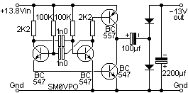 The biggest problem I have with PSUs is that I am only really interested in +13.8vDC. Unfortunately many projects and bits of homebrew stuff need higher voltages, or +/- voltage supplies. Such projects are frequently dismissed for this reason. Typical projects include Zener diode testers, OP-Amp circuits and RF Power Amplifers that use 24 volts. Now all that is over. Here are a few versions of the same theme to provide you with access to different voltage levels using a "slack handfull" of common components. you can even build them into your existing equipment if you need to modify for 12v operation.
