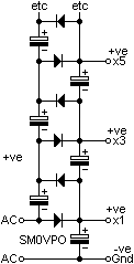 Above we have the well known "Cockroft Ladder" which is a half-wave rectifier and voltage multiplier.
