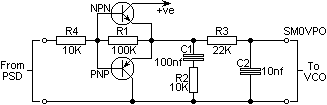 Unfortunately, with just a simple RC network, the complete PLL is a high gain closed loop with two time-dependant elements - a multivibrator! The loop will therefore never lock, but will oscillate up and down the band. Some form of DAMPING has to be included. This is shown as R2 in the circuit below.