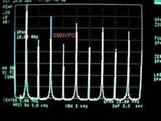 Now that looks a lot better! Not perfect, but certainly a huge improvement. The spurious levels were originally quite low but now they are much cleaner. In practice, if you listen to the signal with an NBFM radio receiver (FT101 160metre band FM mode) you would hear the 1KHz reference frequency, especially after the loop received a minor disturbance. Now that has almost dissapeared. It is still far from perfect, but now it is acceptable. Ok, so we have improved the frequency purity close to the centre frequency, but what about that low- pass filter I mentioned earlier? The output of a CD4046 VCO section is a square-wave and that is festooned with harmonics. After all, it is a square-wave. Odd harmonics are strong but the even harmonics are a little weaker:
