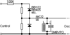 Varicap diodes are not readily available here in Sweden (you have to make some allowances for some of these backward countries) so I have been experimenting with other forms of frequency control. One novel method of varying the frequency of the oscillator (to convert it into a VCO) is to use an ordinary switching diode. This works fine if the oscillations are quite strong and are several volts peak-to-peak at the top of the tuned circuit.