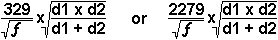 In the first formula I have used d1 and d2 = miles and in the second, d1 and d2 are in kilometers.