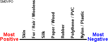 As you can see, skin and nylon are seperated in the scale. This is bad new for the manufacturers of delicate electronic components who use women on the production line. Wallace Caruthers developed nylon, which rapidly became used as a substitute for silk. Skin and nylon were soon to generate huge voltages that would cause high failure rates in the new generation of electronic components.