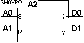 For my two inputs I will use A0 and A1. My output will be from D0, and it's complement will be A1. To make the EPROM remember a condition we must allow the device to control itself to set up a stable state. Connect the D0 output to the A2 input on the circuit board, now let us consider the program. There are three inputs, A0, A1 and A2, therefore there are only a total of 8 memory locations that need to be programmed.