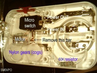 Now it has all been modified, just re-fit the timer rotor. Make sure that the nylon cogs are all aligned and sit in their guides. The last one fits through a hole so that it turns the timer rotor. If there is an over-ride switch, use it to jam the switch-lever and hold it in position when you refit the rotor.