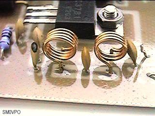 L2 and L3 are the only critical coils in the project. Use 0.5mm Dia. enamelled wire wound on a 5mm drill bit. L2 = 4-turns, and L3 = 3-turns. gain, here is a photograph to explain them: