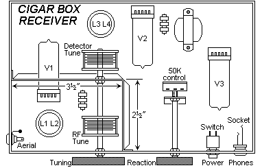 As the interior of the cigar box is completely covered with aluminium fail, it is advisable to keep a close eye on connections and wiring generally in order that they may not earth to the foil. Where there is a danger of this a small piece of cardboard or fibre under valveholders and at strategic points will eliminate the danger. As with all TRF receivers, a good aerial is half the battle. If the receiver is to be used with the cigar box transmitter the same aerial will serve both; a simple form of switching will change over the batteries and the aerial from transmitter to receiver simultaneously. If the receiver is to be used alone, an aerial as high and as long as possible should be erected.