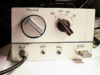 The front panel is very uncluttered having only two controls; BAND switch and TUNE. I also added two switches, one to switch on the PSU HT and the other to key the TX for tuning purposes.