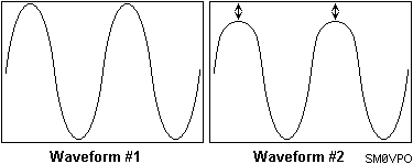 The single transistor circuit is quite capable of delivering several watts of RF power, with the correct choice of components. The big disadvantage of this circuit is that TR1 must have a high standing DC current, which usually means the transistor must be fitted with a heat-sink. Another downfall is that the "hfe" of transistors fall with increased current. This means that as the RF signal changes it's level throughout the cycle, so, too, will the gain of TR1. As the current rises, the gain falls. The following diagram shows quite clearly the effect on the RF output signal.