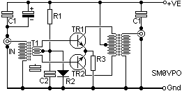 R1 = 4K7, R2 = 1K0, R3 = 47R, C1 = 10n + 22n + 10uf, C2 = 22nf,