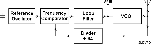 Audio frequencies are then added to the loop voltage that control the VCO frequency. It is in this way the synthesised transmitter is modulated.