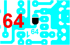 With a 1.5625MHz crystal the transmitter will operate at 100MHz using the 64 setting. If you then cut the track between the pads and place a solder-blob between the other pads then the TX frequency will become 101.5625MHz. If you want to return it to 64 again then remove the solder blob and blob the 64 track again.