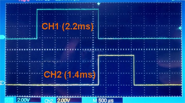 As you can see, the sketch is ridiculously simple, but please note that the code doesn’t use the Servo.h library - the PCM and timing is all done in the script. Instead of using nested loops for all channels, I repeated the code for each channel. This allows you to have different timing data for different servos. It also makes it easier for my 74-year old brain. Arduino port D9 is used to trigger my oscilloscope, I use channel two to trigger my oscilloscope. This makes it easy to see channel pulses on the oscilloscope channel one clearly without it becoming unstable due to variable channel pulse lengths.